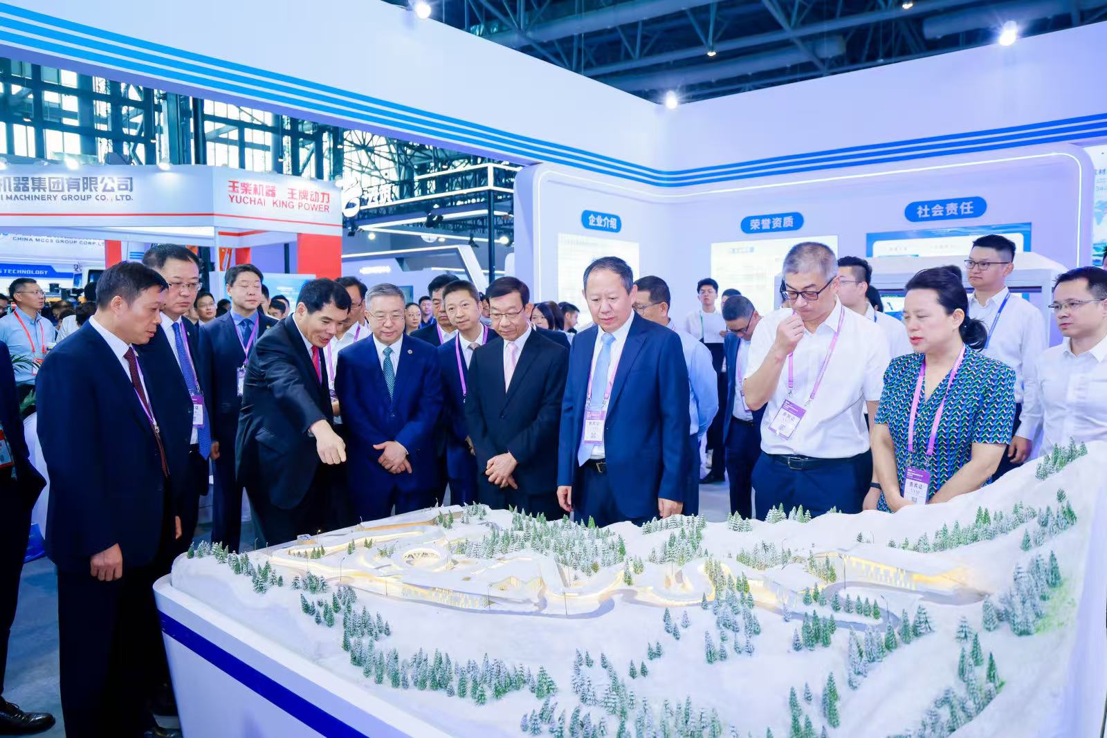 Prior to the opening of the conference, Zhu Guangxia accompanied the leaders of the Fujian Provincial Department of Commerce, the Xiamen Municipal Government, and the China International Contractors Association to visit the booths of Shanghai Baoye and China MCC5.