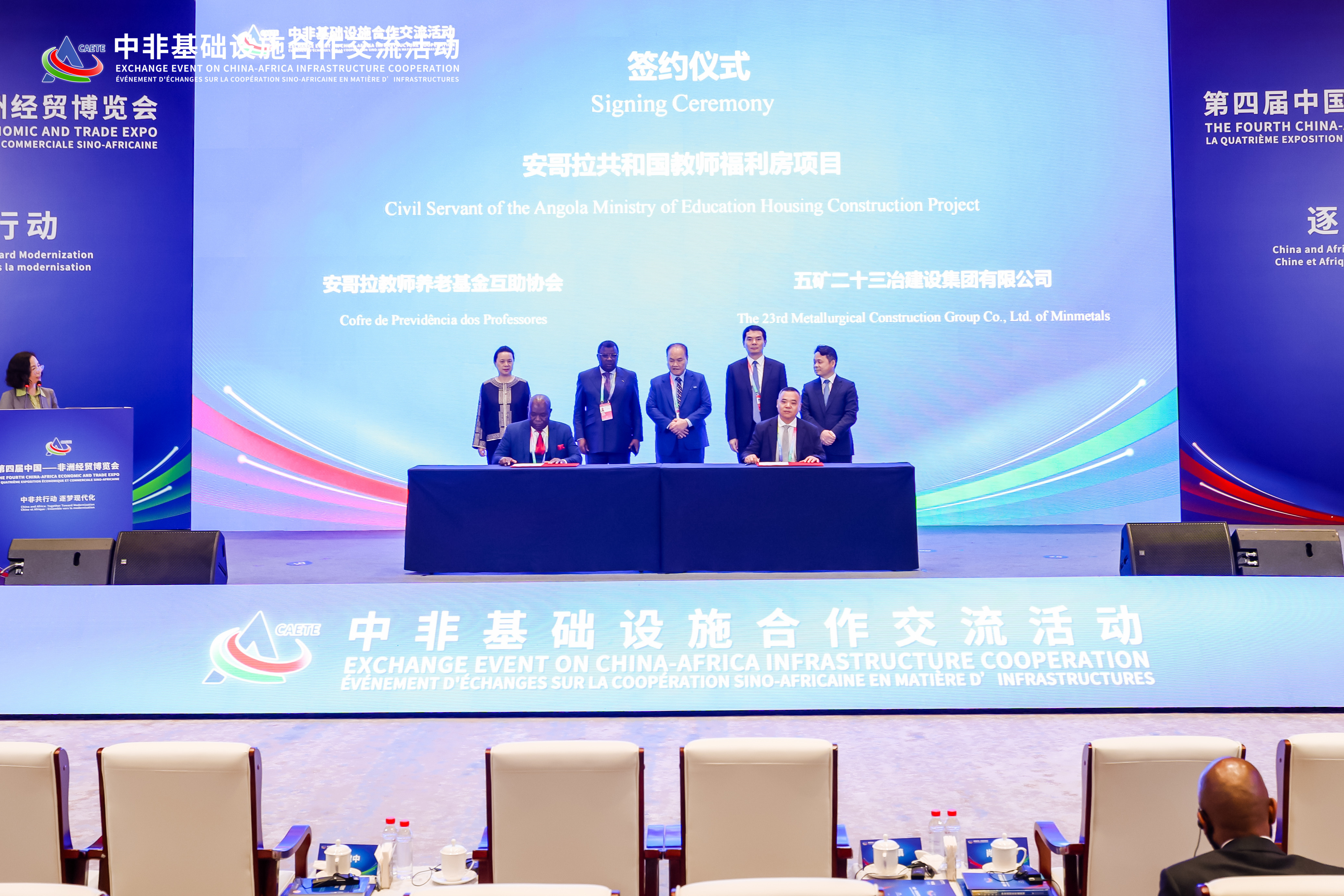 Zhu Guangxia, Member of the Standing Committee of the Party Committee and Vice President of China MCC, was invited to attend the event. He chaired the discussion session themed on "Jointly Building Sustainable Infrastructure and Advancing Modernization" and delivered a keynote speech. At the event, Minmetals 23rd Metallurgical Construction Group signed a project cooperation agreement with the Angola Teachers' Pension Fund Mutual Aid Association, which was witnessed by Zhu Guangxia and other relevant guests.
