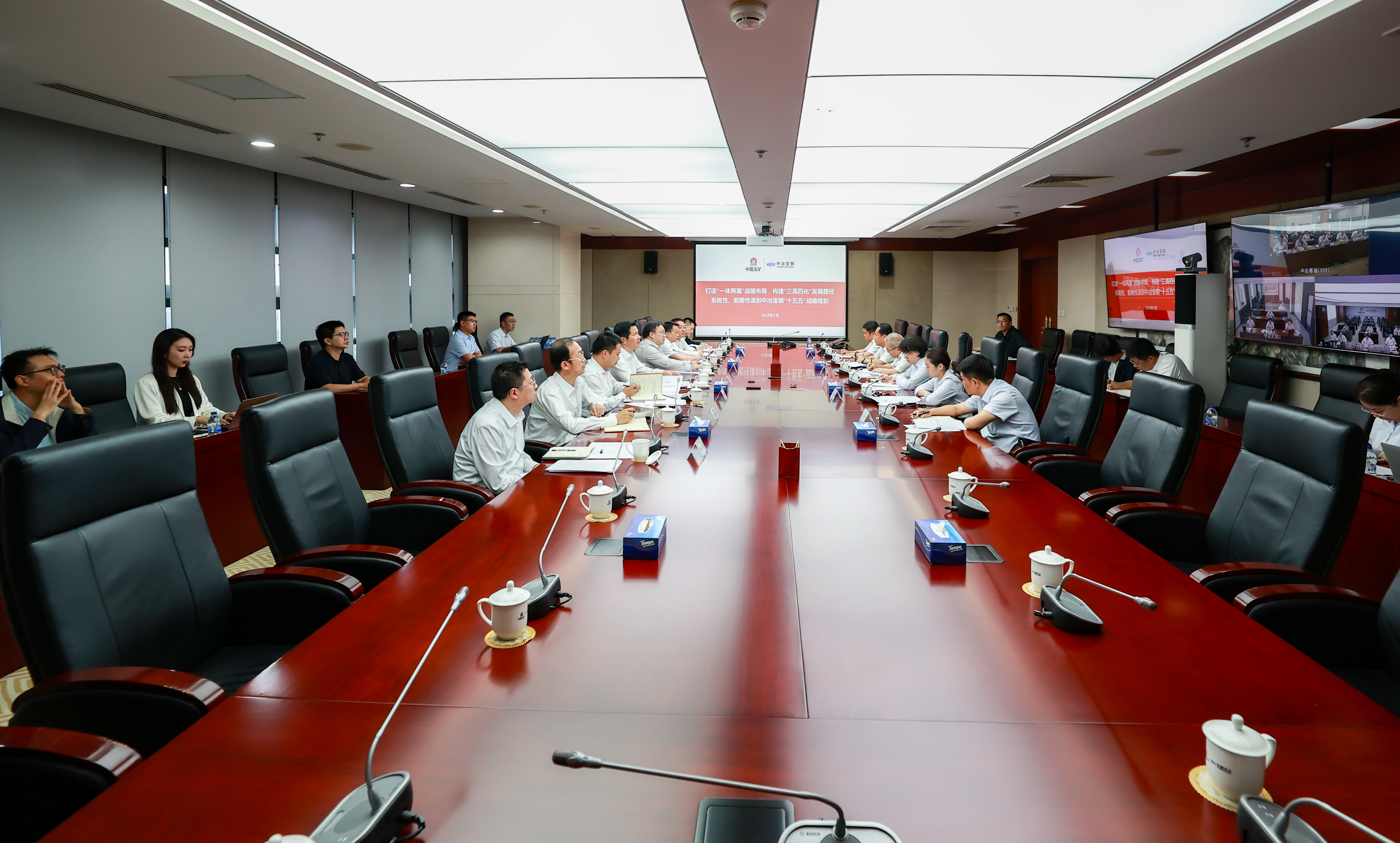 On the afternoon of July 3, China MCC held a special seminar on the "15th Five-Year Plan" and a special symposium on engineering service business in the form of "on-site + video". Chen Jianguang, Member of the Party Leadership Group and Deputy General Manager, Secretary of the Party Committee and Chairman of China MCC, attended the event and delivered a speech. Xiao Peng, Member of the Standing Committee of the Party Committee and Vice President of China MCC, presided over the event. Engineering service enterprises such as MCC Baosteel Technology, MCC Testing, Ceris Consulting, CISDI Information, and MCC WSGRI Engeering and Surveying Zhicheng made reports and put forward opinions and suggestions. Participating units and departments conducted discussions.